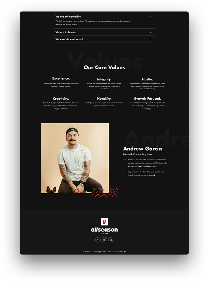 We included vibrant videos, a stark contrast in design, and clear and concise content for the services that they provided. We made sure to make the website visually appealing and straight to the point so the focus would be to have clients contact the company directly to book services. We showcased past works that the company did so that new clients could have a clear idea of what the company is capable of.